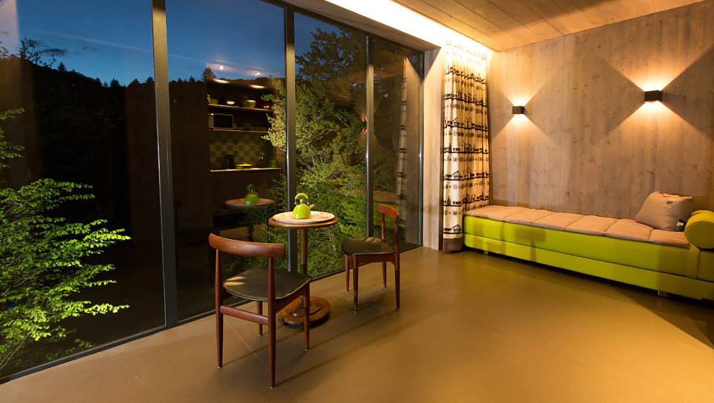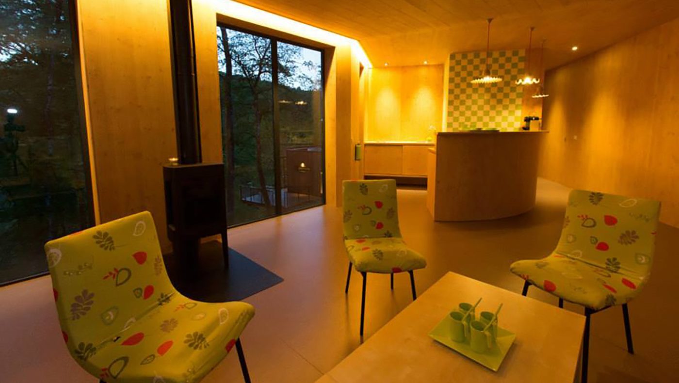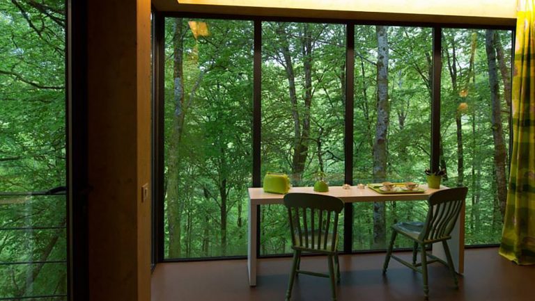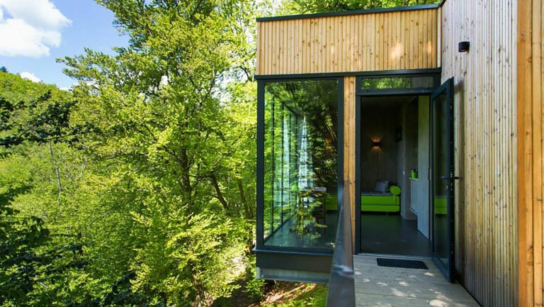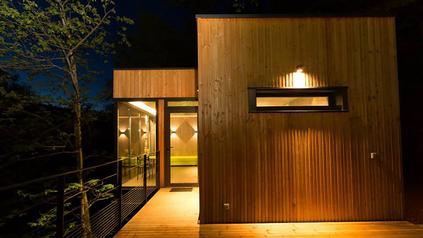 Pour le Domaine de Salagnac en Corrèze, nous avons construit six cabanes perchées dans les arbres avec terrasses selon les plans de l’architecte Apolline Terrier. Grâce à la technique écologique ossature bois, les habitats insolites d’environ 24 m² se fondent harmonieusement, sans se confondre, dans leur environnement boisé. Cette nouvelle approche de l’architecture en pleine nature respecte le site naturel du Domaine de Salagnac classé ZNIEFF (zone naturelle d’intérêt écologique, faunistique et floristique). La forme contemporaine légèrement anguleuse des hébergements de tourisme épouse le terrain. Le mélange des matières (bois, verre, métal), le bardage en bois de mélèze posé verticalement et les pilotis répondent naturellement aux arbres environnants. À l’intérieur des habitations, du bois encore ! Des panneaux de bois habillent les murs et les plafonds pour offrir une atmosphère chaleureuse et agréable à vivre. Un concept architectural aux lignes épurées dans un environnement naturel !