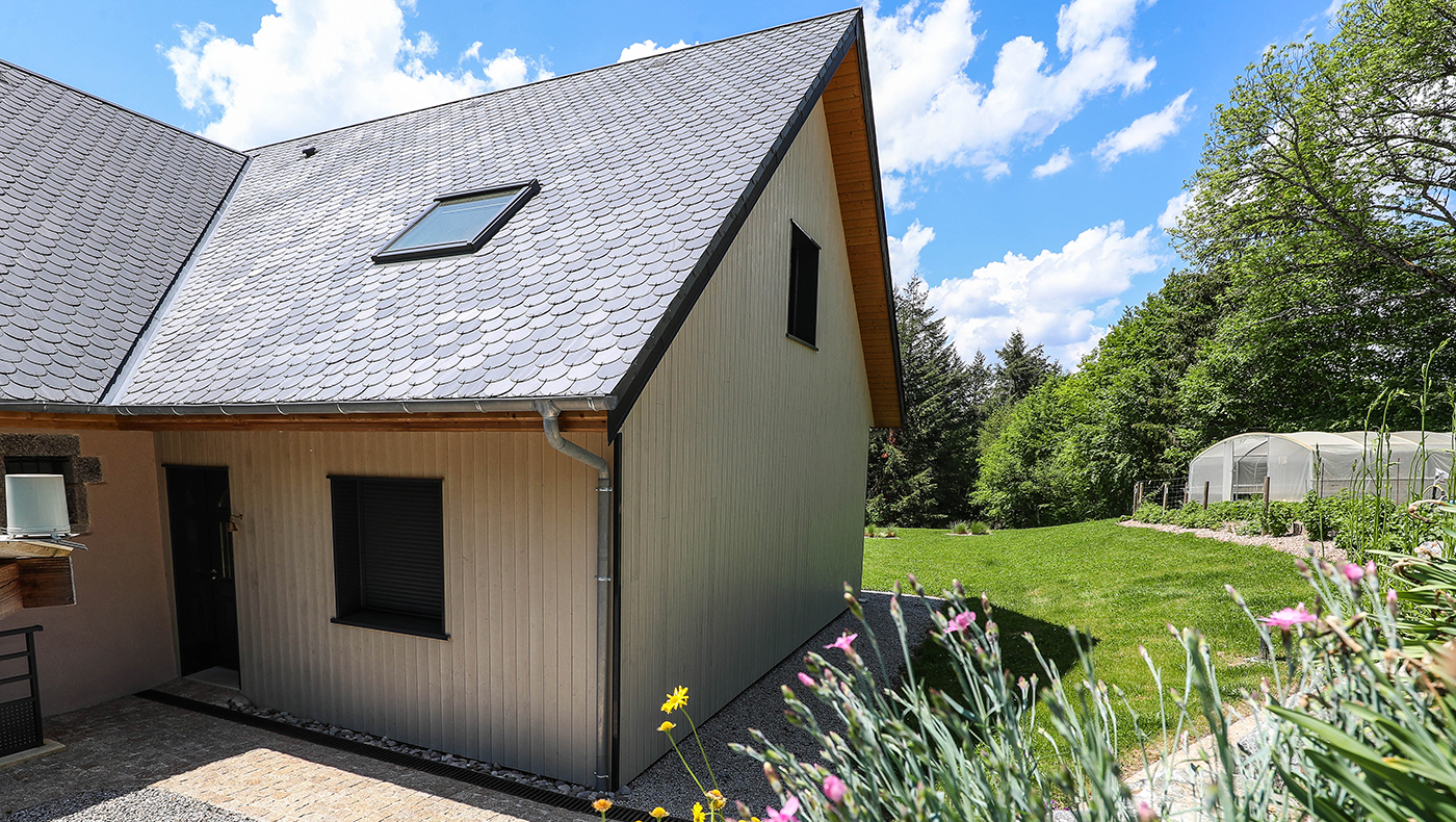 • Construire la structure de l’extension bois avec menuiseries en aluminium et bardage composite ;